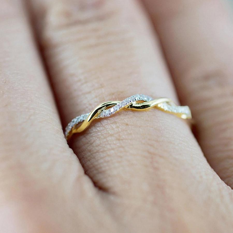LULU CUTE SIMPLE DAINTY CRYSTAL TWIST ROSE GOLD RING