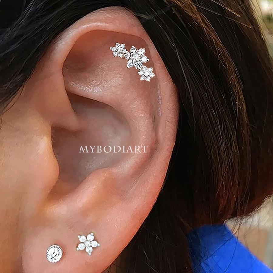 Nose bones resemble a stud earring with a shorter than normal stud, and the stud ends in a small, round ball. The ball is small enough to pass through your piercing with relative ease, but large enough to keep the nose bone from falling out of the piercing.